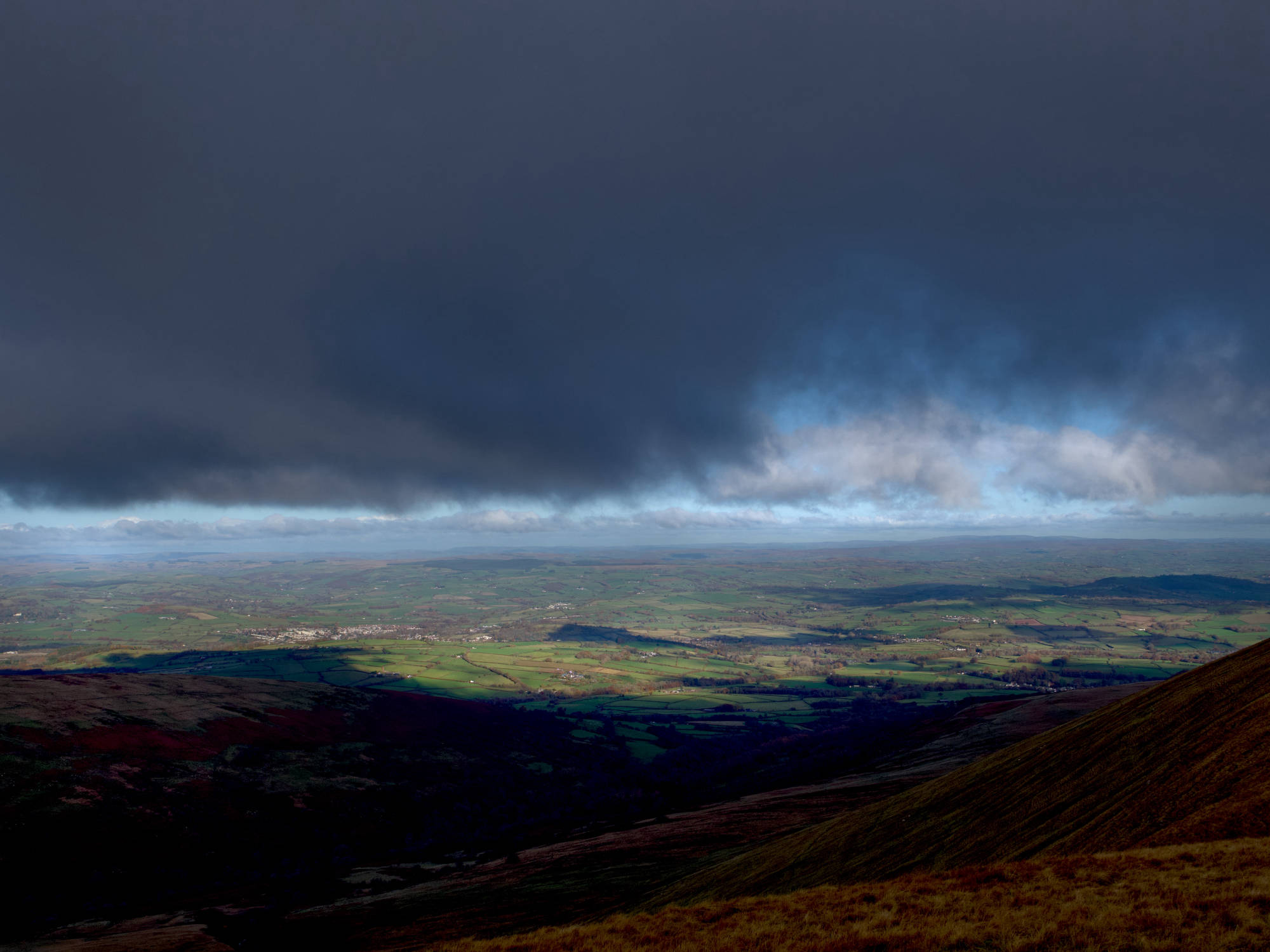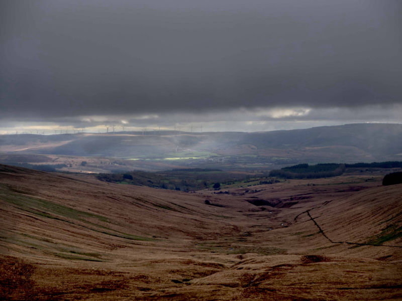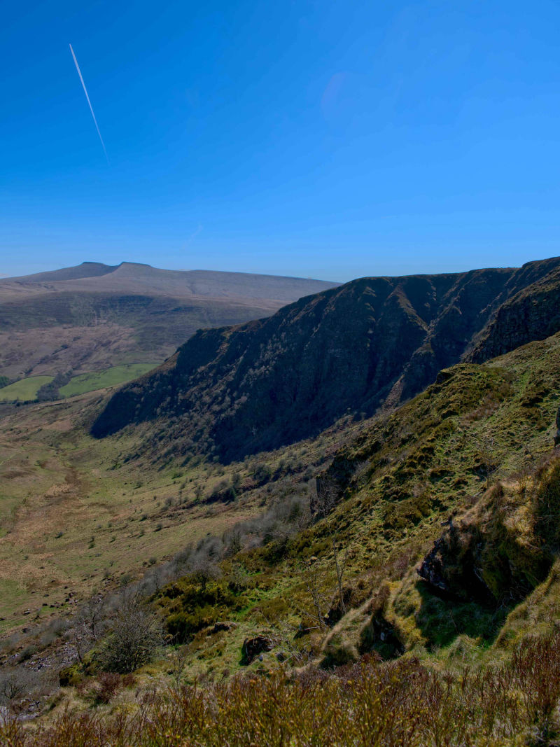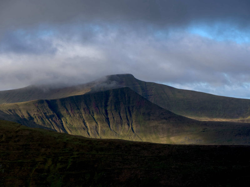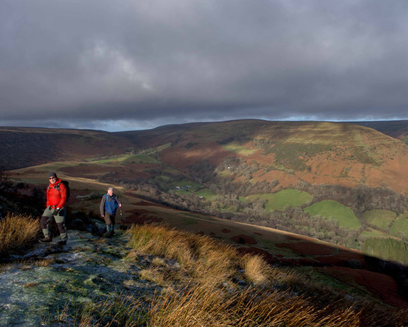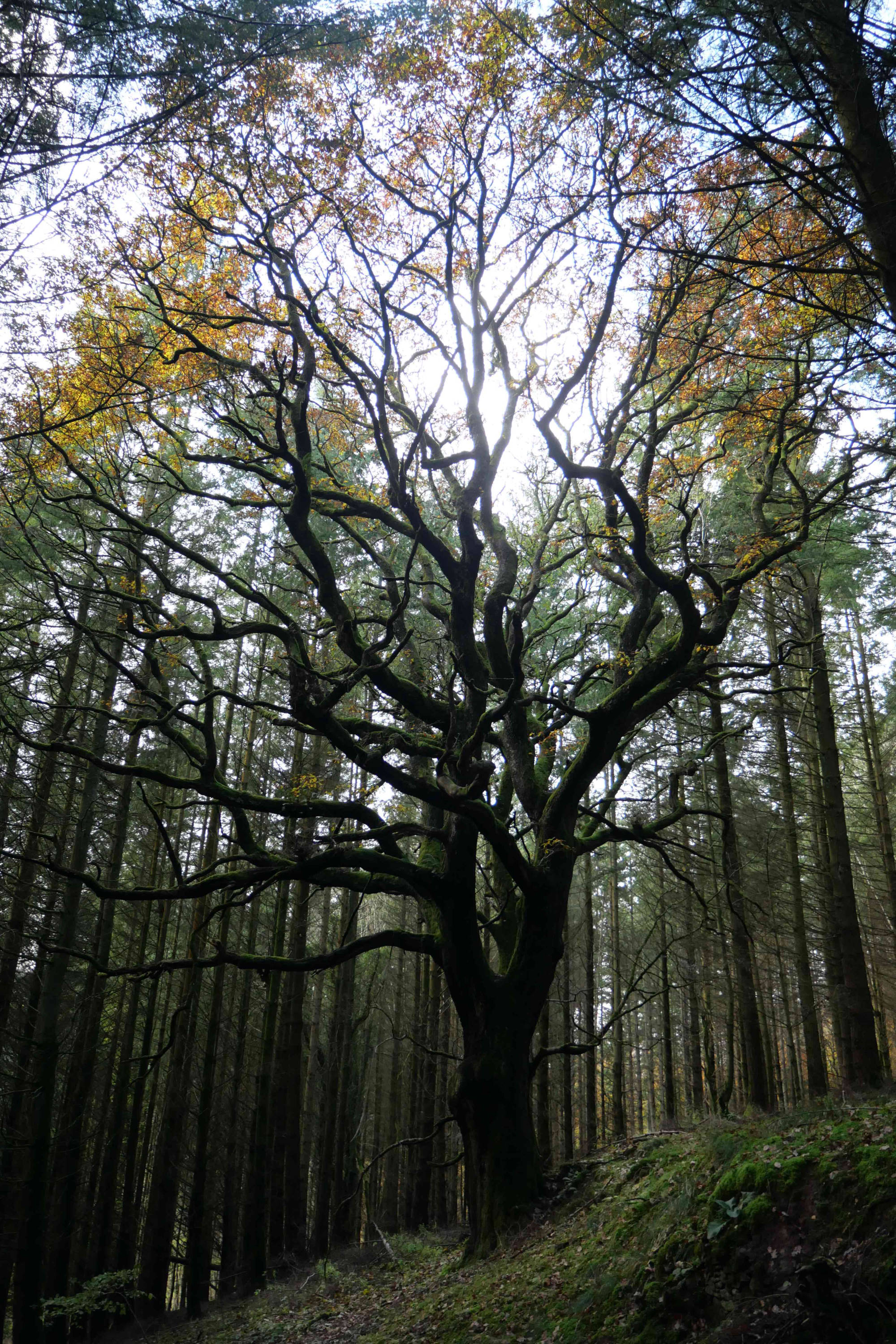 Coming down from the Brecon Beacons and into the shelter of the woods, escaping from a vicious wind on the ridge. A fine day’s walking though, marvellous to be up high, first snow on the ground.