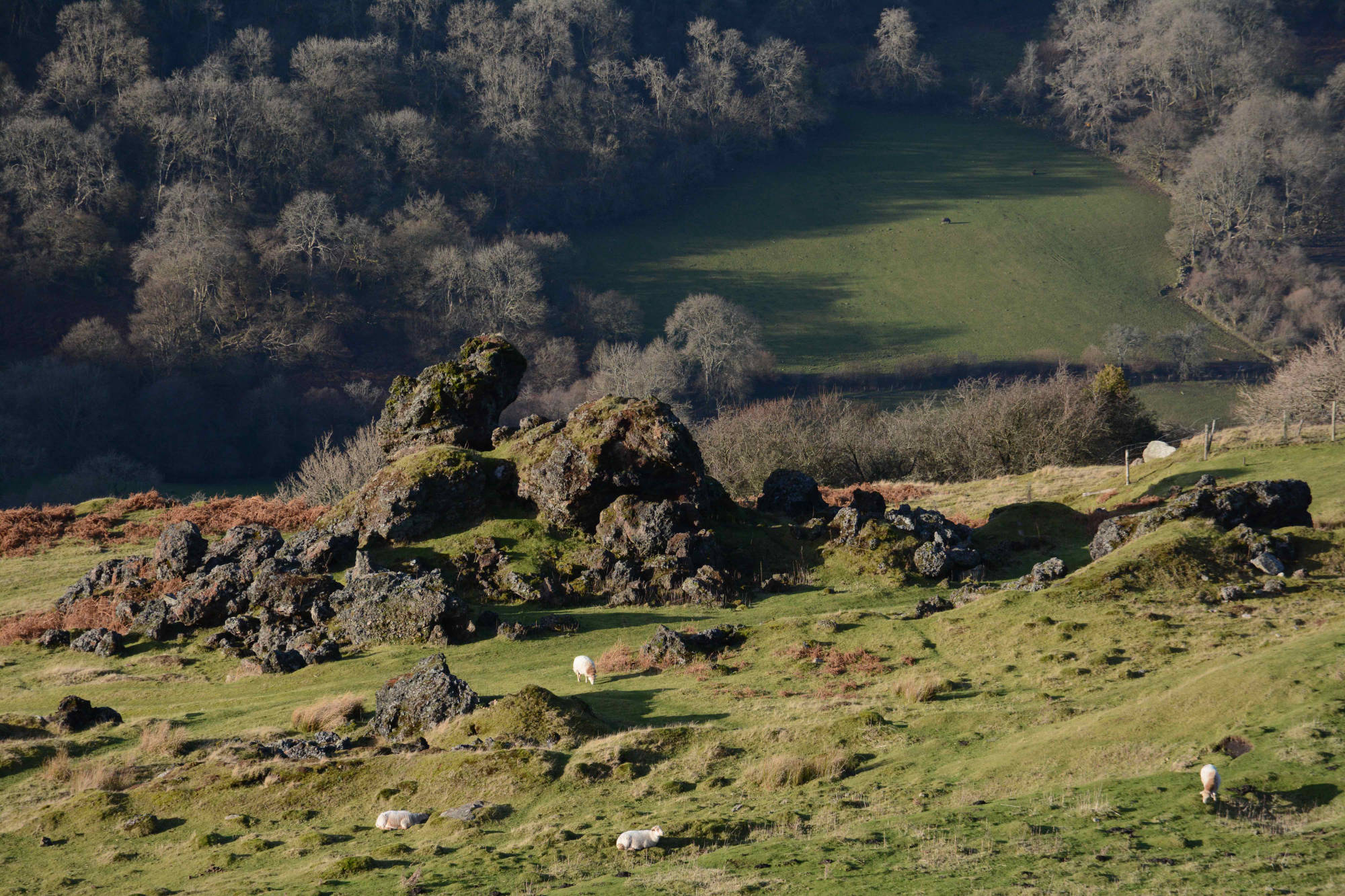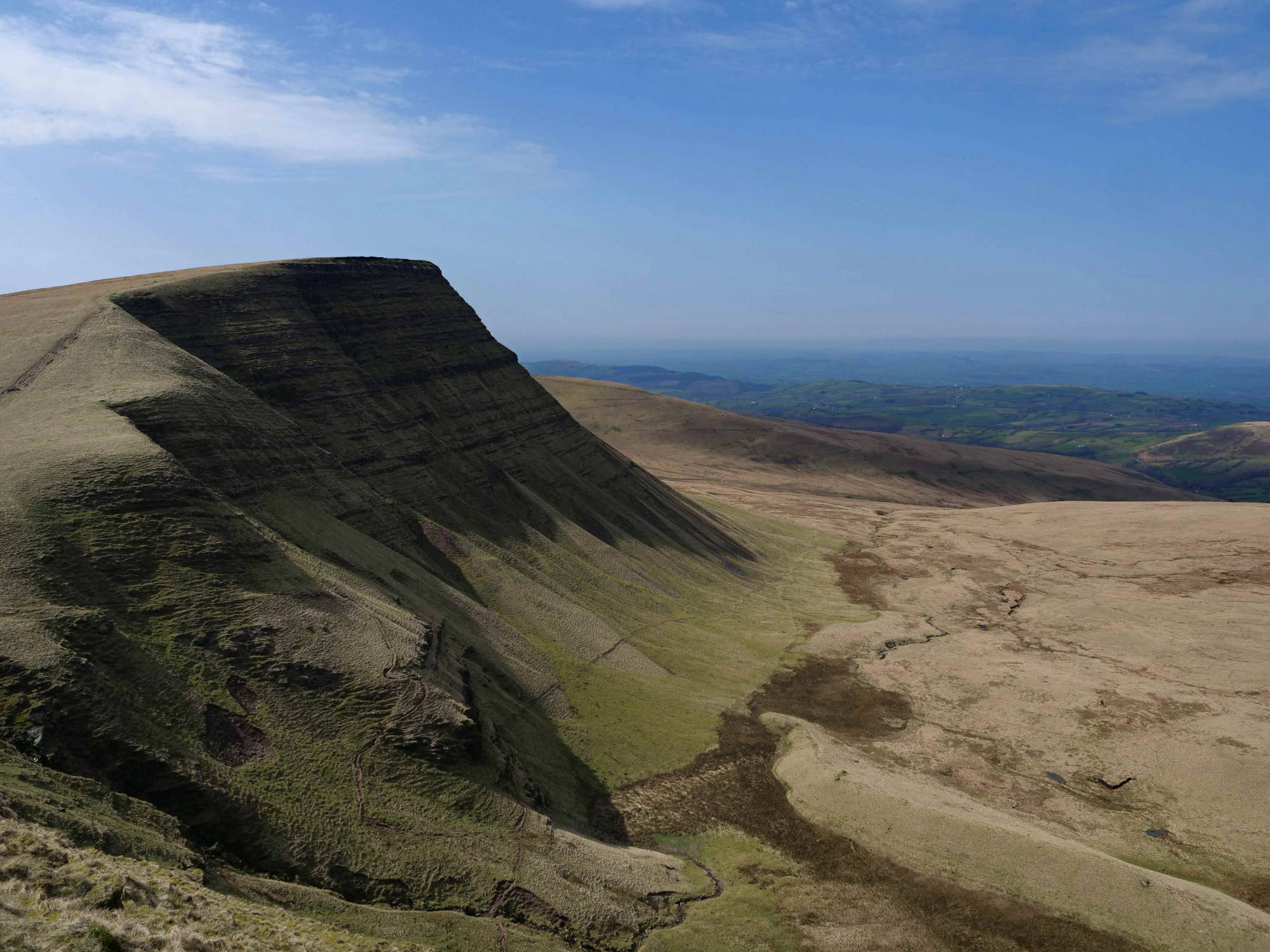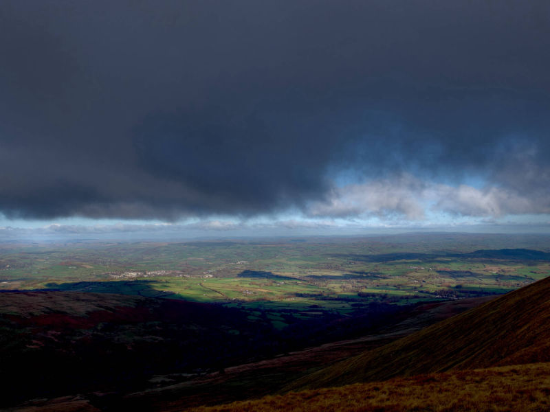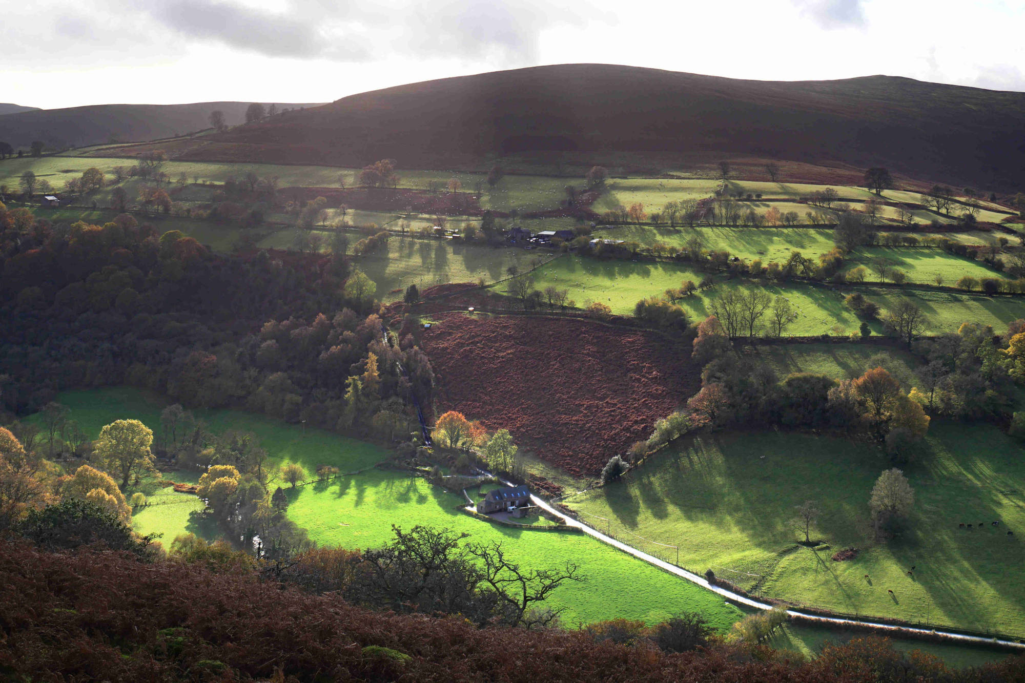 Coming down from the Brecon Beacons and into the shelter of the woods, escaping from a vicious wind on the ridge. A fine day’s walking though, marvellous to be up high, first snow on the ground.
