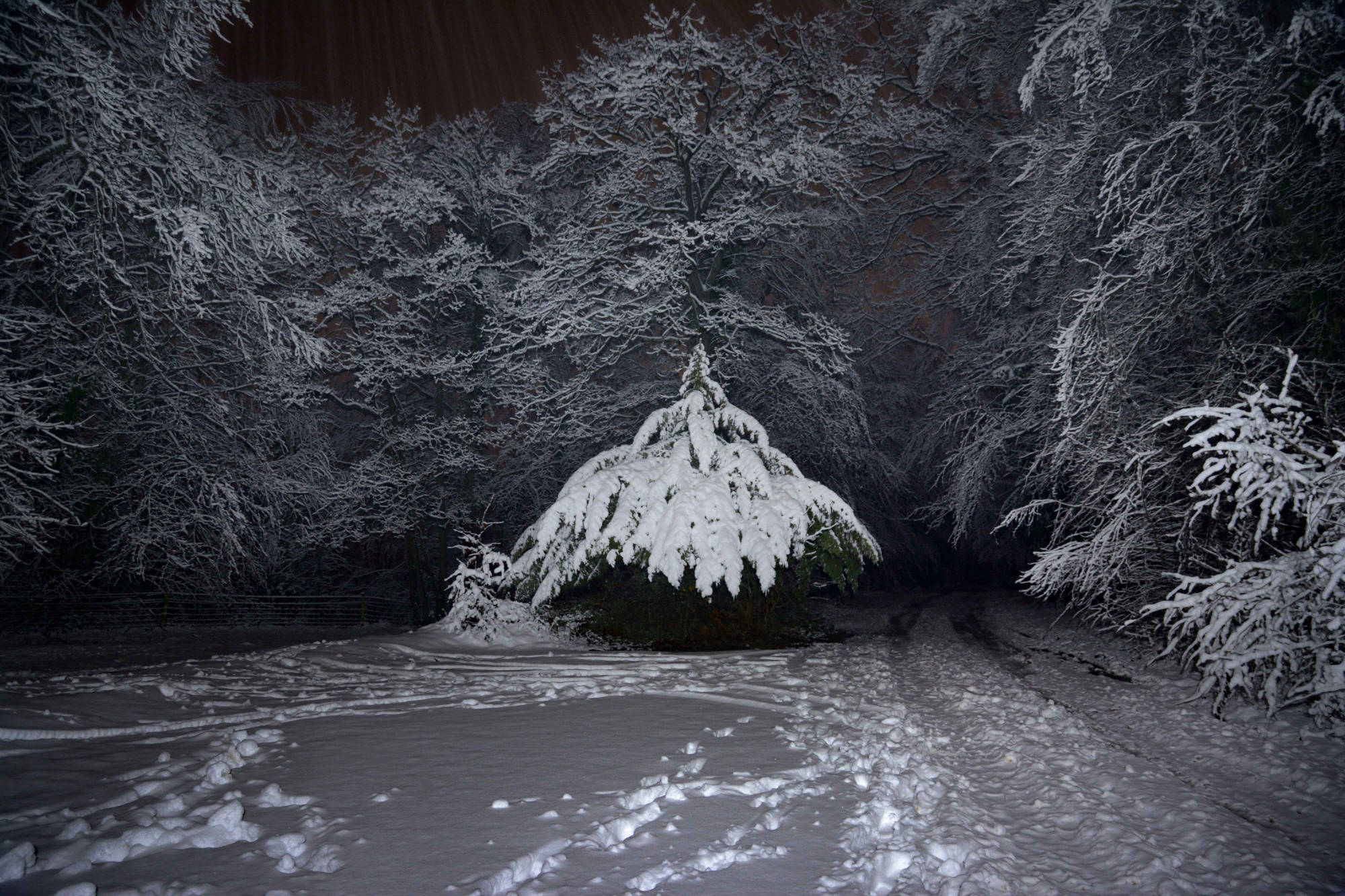 Conifers protect their branches from heavy snowfall by sloping outwards from the trunk, allowing them to keep their leaves throughout the winter.